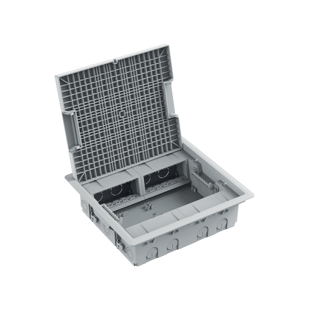 Torretta a scomparsa filo pavimento completa di mostrine Con 4 mostrine universali fino a 16 moduli delle serie civili con standard italiano Coperchio INOX, grigio RAL7040