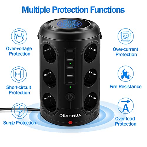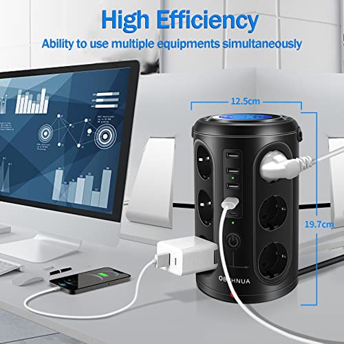 Torretta Multipresa Verticale, OBVHNUA Ciabatta Elettrica, 12 Prese CA 4 Porte di Ricarica USB-A e 1 Porta USB-C, Wireless, per Viaggi, Ufficio Casa, 2500W/15A