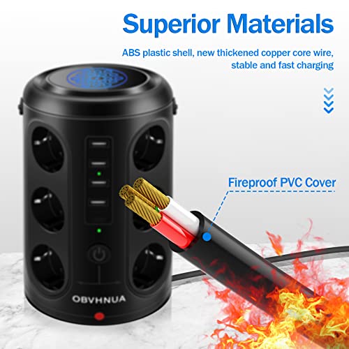 【Risparmio di Spazio】Con il design a torre verticale, OBVHNUA stazione di ricarica consente di risparmiare spazio e non è necessario preoccuparsi di spine grandi che bloccano le altre prese. L'anima del cavo è in rame puro, la copertura in PVC ignifugo, sicura e resistente, e la lunghezza di 2 metri può so