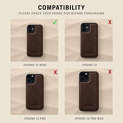 TORRO Custodia Compatibile con iPhone 12 Mini - Caso Bumper in Vera Pelle con Connessione MagSafe Integrata (Marrone Oscuro)