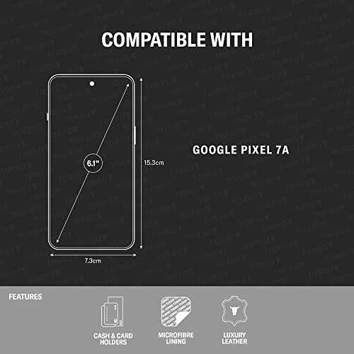 COMPATIBILITÀ - Custodia in pelle TORRO con portacarte progettata e realizzata esclusivamente per Google Pixel 7a. La vestibilità di precisione garantisce un accesso completo e illimitato a schermo, fotocamera, pulsanti e porta di ricarica.