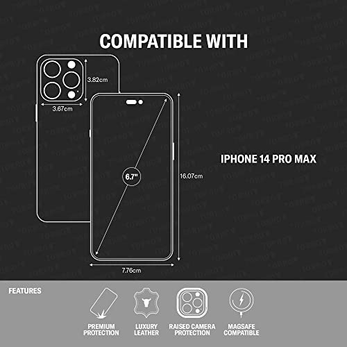 COMPATIBILITÀ - La custodia TORRO in pelle Bumper per iPhone 14 Pro Max è progettata e realizzata esclusivamente per iPhone 14 Pro Max. La vestibilità di precisione garantisce un accesso completo e illimitato allo schermo, alla fotocamera, ai pulsanti e alle porte di ricarica.