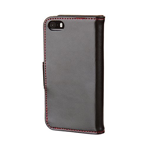 TORRO Custodia Portafoglio In Vera Pelle Compatibile Con Apple iPhone SE iPhone 5S E iPhone 5 (Nero)