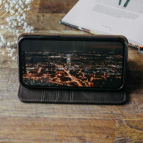 TORRO Custodia Stand in Vera Pelle Compatibile con Apple iPhone XS Max (Marrone Oscuro)