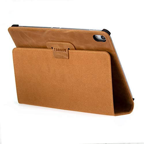 TORRO Custodia Stand In Vera Pelle Compatibile Con Apple iPad Pro 11" 2018 (Marrone Chiaro)