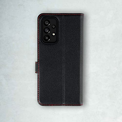 TORRO Custodia per Telefono Compatibile con Samsung Galaxy A53 5G - Cover in Vera Pelle Premium con Slot per Schede e Supporto di Visualizzazione Orizzontale - Nero