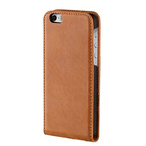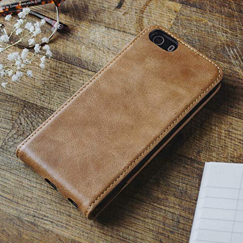 TORRO Custodia Flip Verticale in Vera Pelle Compatibile con Apple iPhone SE (2016) iPhone 5S E iPhone 5 (Marrone Chiaro)