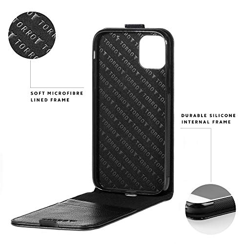 TORRO Custodia Flip Verticale in Vera Pelle Compatibile con Apple iPhone 11 PRO Max (Nero)