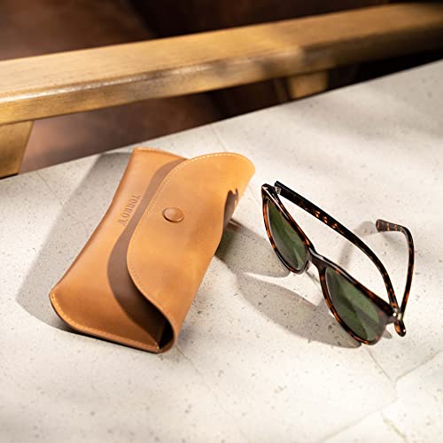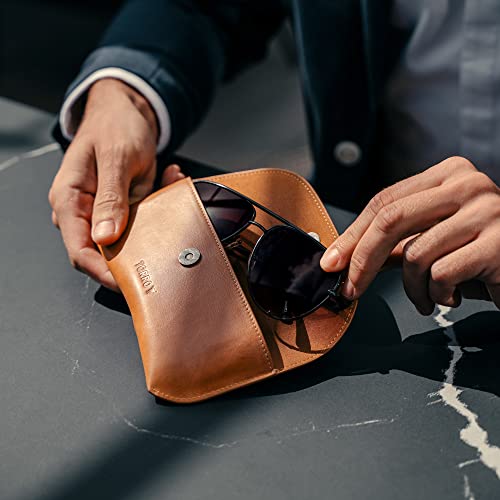 TORRO Portaocchiali per Occhiali da Sole in Vera Pelle [Fodera in Microfibra] [Chiusura con Bottone a Pressione] [Supporto Ponte Nasale] [Fessura]