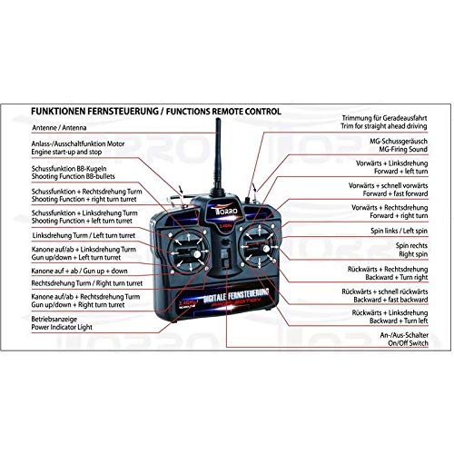 Ogni modello estradata è un pezzo unico. Con funzione di tiro combattimento IR (6 mm nel nostro altri offerta) & fumo & Sound & & MG illuminazione, rotazione (dx/sx a 320 °) & cannone alto/basso & funzioni di guida realistico & come rinculo & drehstabgefederte folli & comandante & accessori ecc. selezione verbauter parti metalliche visualizza sulla sopra l' immagine.