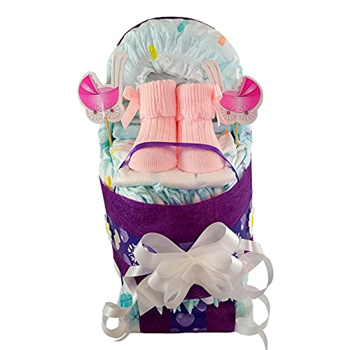 Torta Di Pannolini Carrello Per Ragazza Viola
