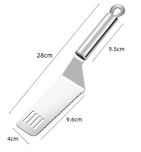 Spatola a tutto tondo: questa lama seghettata affilata sul lato taglia senza sforzo anche i dolci più delicati senza disturbare la forma e l'aspetto eleganti, come brownies, lasagne, pizza, bistecche e altro ancora. È uno strumento da cucina indispensabile .