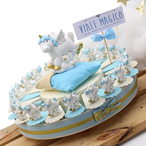 Il Design Italiano ed esclusivo delle bomboniere Statuina Unicorno dipinte a mano richiama uno dei simboli più dolci per celebrare il compleanno, la nascita o il battesimo di un bimbo.