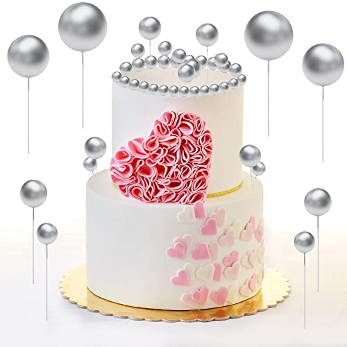 YJFY Torta Sfera in Schiuma 4 Taglie Bastoncini per Torta per Torta Cupcake Palline Perle Finte DIY Decorazione Forno per Compleanno (Argento)