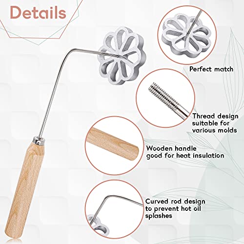 À - Gli stampi per rosette contenuti in questa confezione sono realizzati in una lega di alluminio resistente e ben lavorata, che li rende robusti e affidabili con una forma chiara. Inoltre, questo pratico strumento è dotato di un lungo manico in lega di alluminio che protegge le mani dall'olio bollente e di una comoda impugnatura in legno che rimane fresca.
