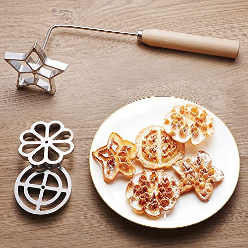 Tortillada - 4 pezzi Set Bunuelos Stampo con manico in legno Rosetta Maker biscotto Strumento in alluminio fuso stampi per cialde Set con 3 stampi (Stella Fiore Cerchio)