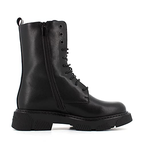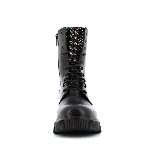 Tosca Blu Fiaba Stivaletto biker in pelle stringato con dettagli gioiello, nero, 41 EU