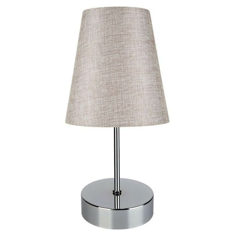 Lampada da tavolo cromo beige Estelya AZ1068 La lampada da tavolo Estelya è la scelta perfetta per coloro che cercano un prodotto durevole ed elegante. Con la sua base in cromo lucido e la sfumatura beige dell'ombra in tessuto, questa lampada si adatta perfettamente a qualsiasi arredamento. Grazie al suo interruttore on/off facile da usare, la lampada Estelya è anche molto pratica e comoda da utilizzare. Aggiungi un tocco di eleganza alla tua casa con la lampada da tavolo Estelya. Caratteristiche: Base in metallo colore cromo Paralume in tessuto colore beige Attacco lampadina 1 x E27 max 60 Watt Dimensioni: Altezza 35,5 cm Larghezza base 12 cm Altezza paralume 17 cm