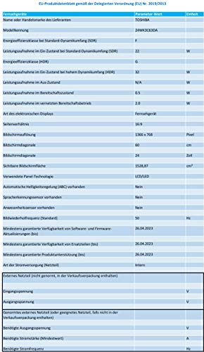 Toshiba Smart TV 24" HD Ready 24WK3C63DA, TV 24 Pollici con Alexa Integrata, Compatibile con Alexa e Google Assistant, Digitale DVB-T2, ELED, HDR10, Dolby Audio