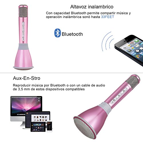 TOSING K068 Microfono portatile wireless per adulti Bluetooth per bambini Karaoke e altoparlante Lettore musicale e macchina per canto Compatibile con iOS/Android Smartphone/Tablet PC (pink)