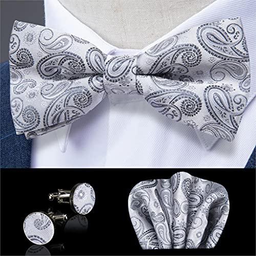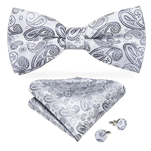 TOSLEJF Papillon in Seta Papillon Argento Papillon da Matrimonio da Uomo Fazzoletto da Taschino Gemelli Set Completo per Festa di Matrimonio