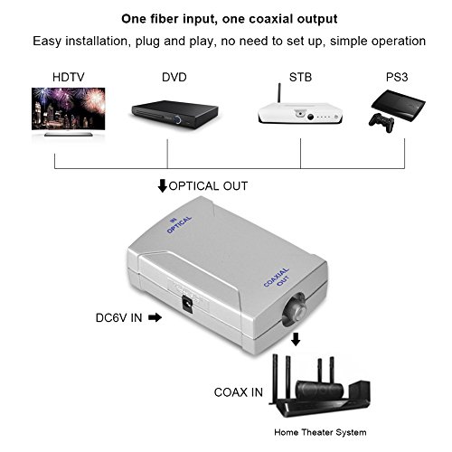 Fosa Toslink Convertitore audio digitale coassiale da ottico a coassiale per Home Theater e DTS e Dolby(argento )