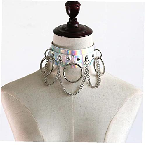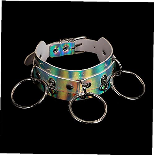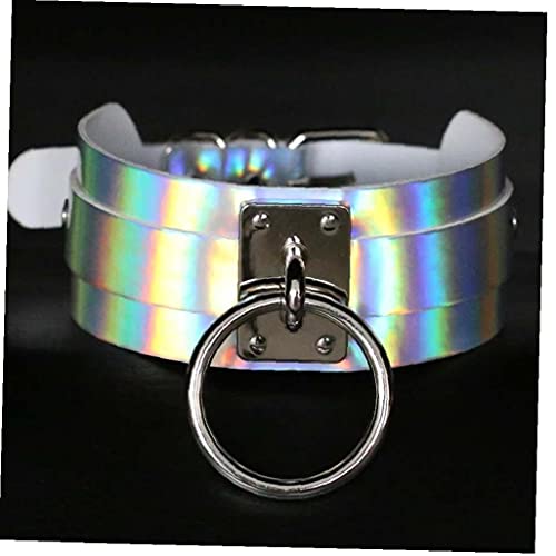 TOSSPER Collana a Catena Choker Olografica Collana Punk Rainbow Collare in Pelle Party Festival Costume