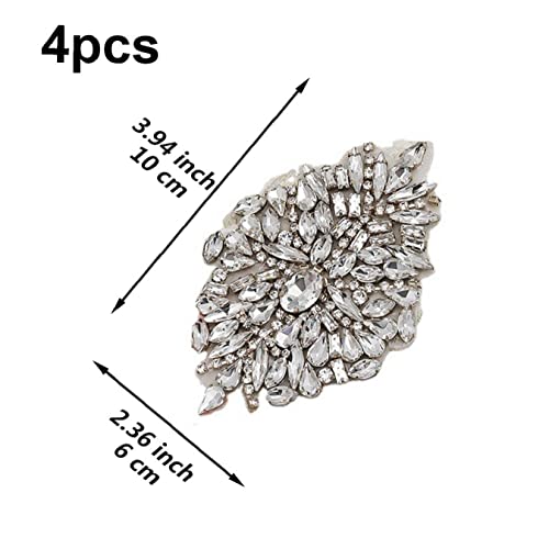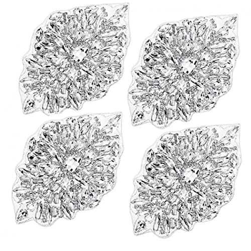TOSSPER 4 Pezzi Applique Rhinestone Ironico su Patch Hot Fix Applique per Scarpe Sposa Vestiti Abiti Abiti a Fascia Crystal Cascing Cucile Appliques