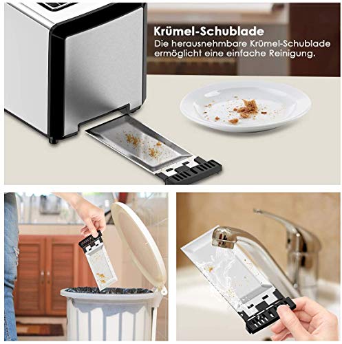 【 vassoio raccoglibriciole estraibile 】 per una facile pulizia c'è un cassetto raccoglibriciole estraibile nella parte inferiore del pane tostapane. Dopo ogni utilizzo è possibile inserire il contenitore per briciole nella lavastoviglie per una pulizia rapida.