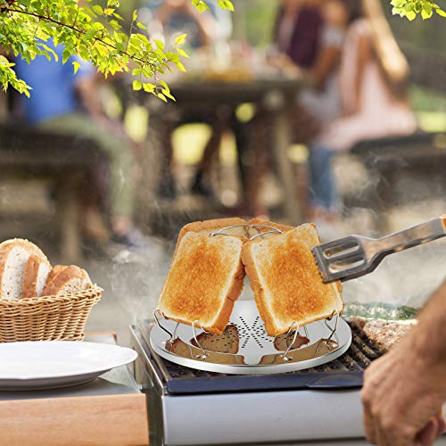 Tostapane Da Campeggio in 4 Pezzi Con Supporto Pieghevole Vassoio Perforato Tostapane Familiare Fornello a Gas Da Esterno Picnic Pieghevole