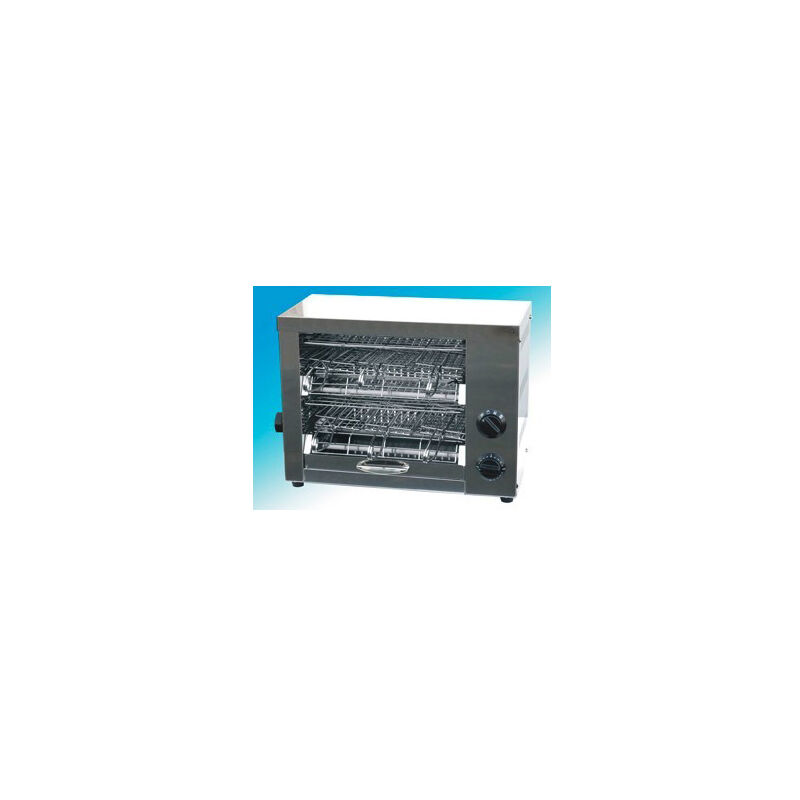 Codice RS2051 - Fornetto a 2 piani, modello BE-A6, dimensioni cm. 47x23x36 (lxpxh), completa di n.6 pinze, timer, 2500 watt (resistenze al quarzo), 230 volt. Apparecchio di facile utilizzo, ideale per riscaldare toasts, pizzette e focacce, grigliare verdure e pesce, tostare bruschette. Carrozzeria interamente in acciaio inox. Impianti interni in siliconvetro adatti ad alte temperature e cavo di alimentazione in H07RN-F.