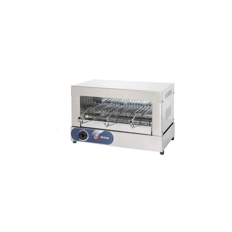 Codice RS2045 - Fornetto a 1 piano, modello FF-TN3, dimensioni cm. 45x25.7x28.5 (lxpxh), completa di n.3 pinze (in acciaio cromato), timer, 2000 watt, 230 volt. Struttura in acciaio inox. Cassetto raccogli briciole estraibile. Resistenza al quarzo. Temporizzatore per regolazione cottura da 0 a 15 minuti. Doppio termico di sicurezza. Isolamento termico interno per maggior sicurezza dell'operatore contro le scottature.