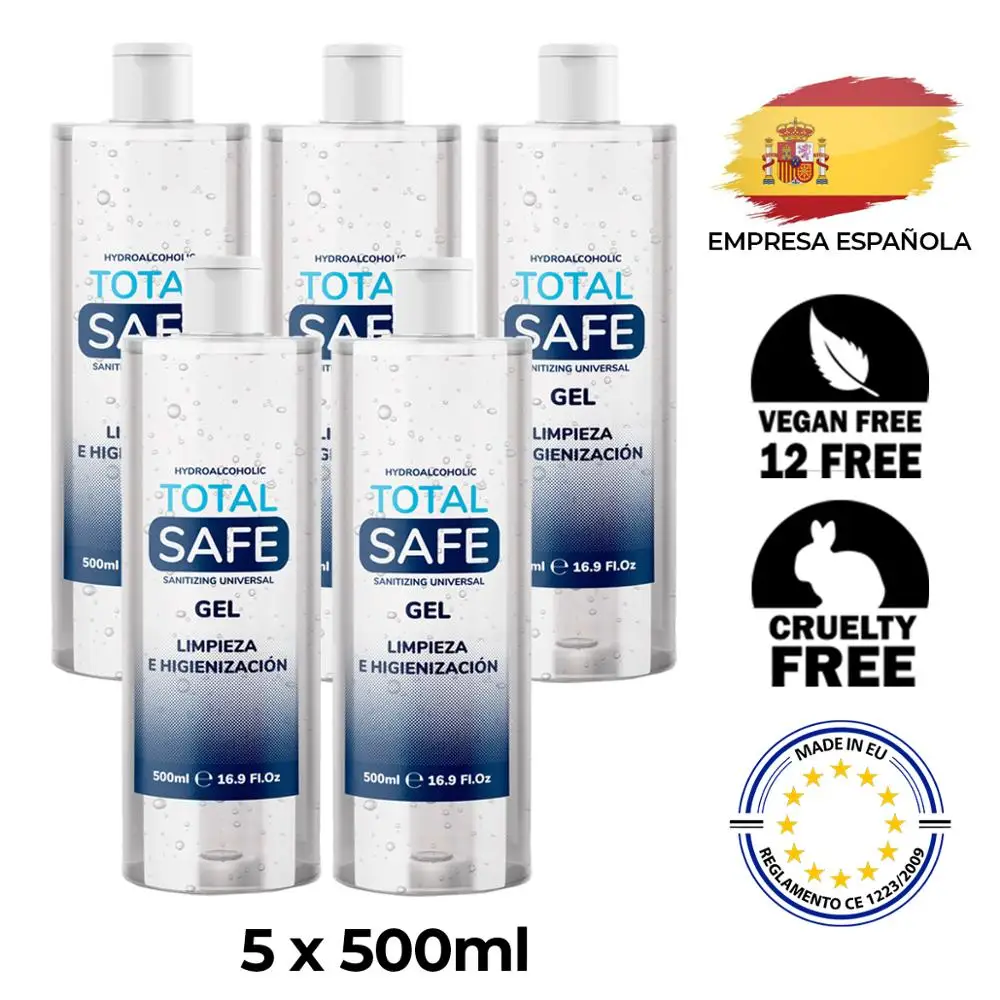 Pack 5 x Total Safe Hidroalcoholico Gel 500ml 70% Alcohol Ideal for a deep hygiene hands | gel hidroalcohol