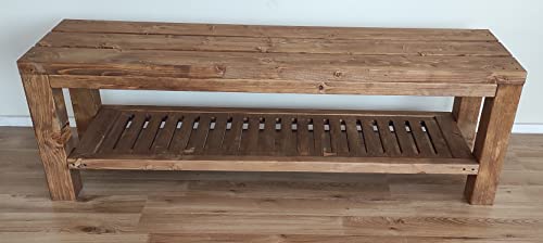 TOTAL WOOD 2012 Panchina in Legno Porta Scarpe con Ripiano Inferiore Interno Scarpiena Panca con Vano Panca Spogliatoio Legno Trattato Anche su Misura... (200X38.5X50, Noce Scuro)