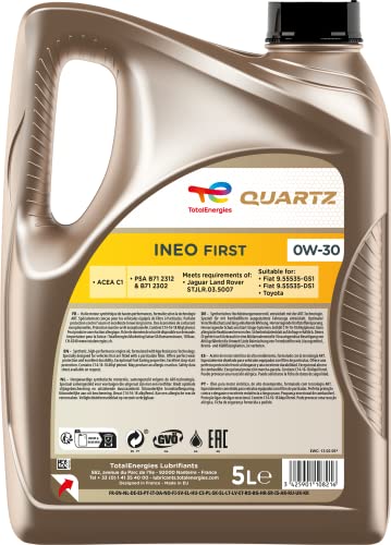 Total Quartz Ineo First 0 W-30 olio motore completamente sintetico Low Saps auto, 5 litro