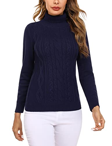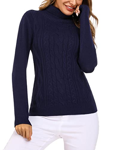Totatuit Maglione a Collo Alto da Donna a Maglia a Maniche Lunghe, Slim Fit in Maglia da Donna Blu XXL