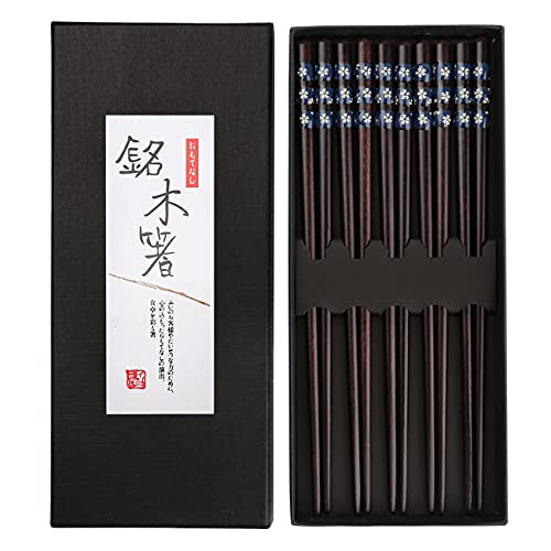 TOTKEN Bacchette di Legno, Top Rate Giapponese 5 Paia di Legno Naturale Facile da Usare Elegante Artigianale Bacchette Set con Custodia Regalo per Sushi Cinese Piatto Barbecue (Blu)