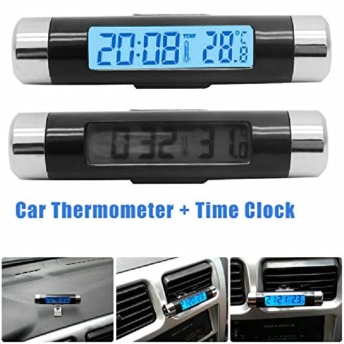 TOTMOX 2 in 1 Orologio Elettronico per Auto Termometro Luminoso, Retroilluminazione Clip-on Clock Automotive Digital Monitor LCD Termometro per Auto