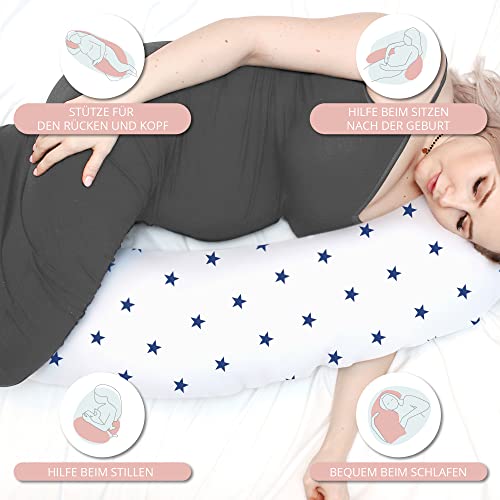 Totsy Baby Fodera per cuscino per dormire laterale 165 x 70 cm - Cotone fodera per comfort Body Pillow con cerniera Bianco con stelle blu