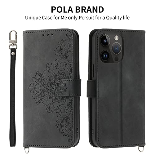 Toucasa Cover Cordino per iPhone 13 PRO, Custodia Portafoglio con Cordino Cover a Libro in Pelle Flip Case con TPU Antiurto Silicone Bumper, Magnetica per iPhone 13 PRO (6,1 Pollici) (A-Nero)