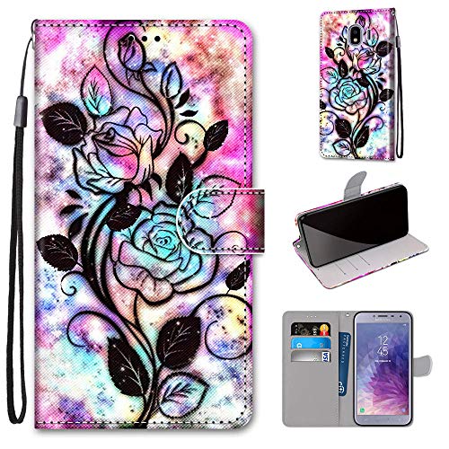 Toucasa Cover per Galaxy J4 2018,Flip Caso Custodia [Creativo Dipinto] PU Pelle Portafoglio Unico Sottile Funzione TPU Antiurto Flip Cover a Libro per Samsung Galaxy J4 2018 (Fiore Cavo)