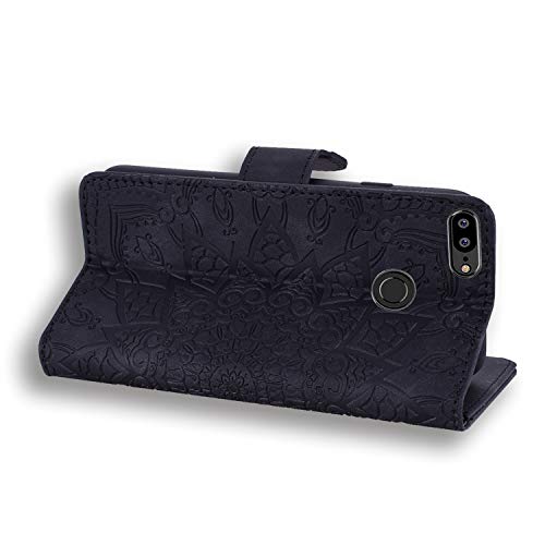TOUCASA Cover per Huawei Honor 9 Lite,Flip Custodia [Glitter Diamond] PU Pelle Portafoglio Unico Sottile Funzione TPU Antiurto Flip Cover a Libro Custodie Protettivo (Nero)