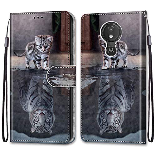 Toucasa Cover per Motorola Moto G7 Power,Flip Caso Custodia [Creativo Dipinto] PU Pelle Portafoglio Unico Sottile Funzione TPU Antiurto Flip Cover a Libro per Motorola Moto G7 Power (Cat Tiger)