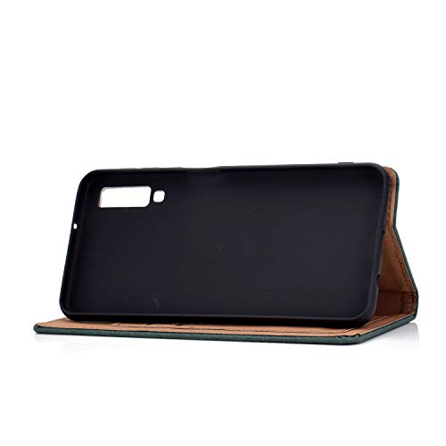 TOUCASA Cover per Samsung Galaxy A7 2018,Flip Bling Magnetica Supporto Caso PU Pelle Portafoglio Unico Sottile Funzione TPU Flip Antiurto Cover a Libro per Samsung Galaxy A7 2018 (Verde)