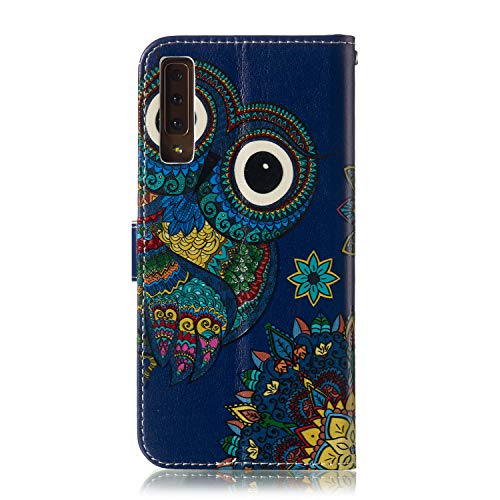 TOUCASA Cover per Samsung Galaxy A7 2018, PU Premium Full Body Design Pittura a Custodia in Pelle con Supporto per Carta di Credito Folio Magnetica Supporto Cover Case (Gufo)
