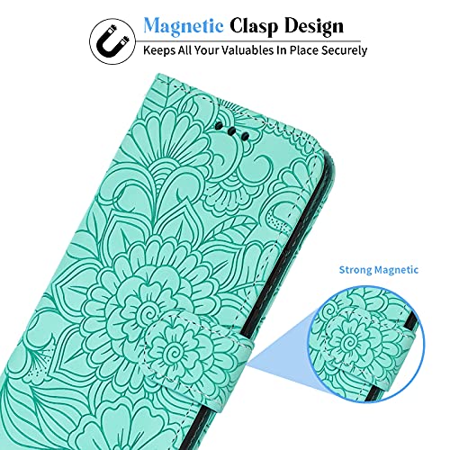 TOUCASACHOICE Cover per Huawei P Smart/Enjoy 7S/Honor 9 Lite, [Design in rilievo] Flip Custodia Pelle PU Interno TPU Antiurto [Kickstand] [Slot Schede] RFID Blocking Portafoglio Magnetica (Verde)