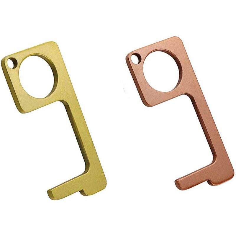 Specifiche del prodotto: Materiale: lega di zinco Dimensioni: 76 * 32 * 4 mm (2,99 * 1,25 * 0,15 pollici) Colore: bronzo blu e bronzo rosso Peso: 30 g Quantità: 2 Altri vantaggi: formato Mini e facile da trasportare. Può anche essere messo in tasca o in borsa, il che è molto comodo e conveniente. Design ergonomico. Tieni premuto da un lato e tocca altre cose dall'altro lato. Può mantenere le mani pulite e non danneggerà la porta e i pulsanti. L'assistente della maniglia della porta può aiutarti a premere i pulsanti dell'ascensore, tirare le maniglie dei cassetti / le maniglie delle porte, ecc. Senza toccare direttamente. Evita di toccare touchscreen pubblici come i pagamenti in negozio. Usa mano igienica per premere pulsanti, spostare sedie, sciacquare il water e trasportare sacchetti della spesa, ecc. Nota: 1. Esiste uno spazio da 1 a 2 cm a causa dei diversi modi di misurazione. 2. A causa della differenza tra diversi monitor, l'immagine potrebbe non essere il colore effettivo