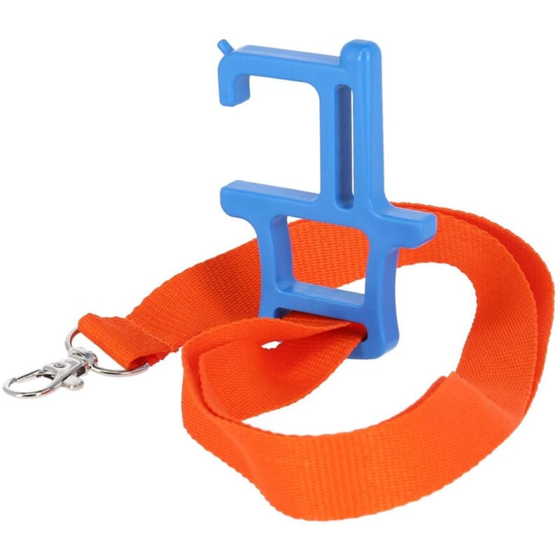 Touch-it appositamente studiato per aprire porte e finestre. Adatto anche per svolgere altre attività quotidiane. Azionare interruttori, aprire rubinetti, trasportare borse, pulsanti a pressione In questo modo si evita il contatto diretto della mano con gli oggetti. Design compatto e leggero ideale da portare sempre con sé. Il materiale utilizzato to È realizzato in materiale antibatterico. Include cordino per migliorare la presa e facilitare il trasporto. Touch-it presentato in blister individuale in una scatola da 12 unità. Disponibile in blu, arancione, verde e nero, cordino sempre arancione.