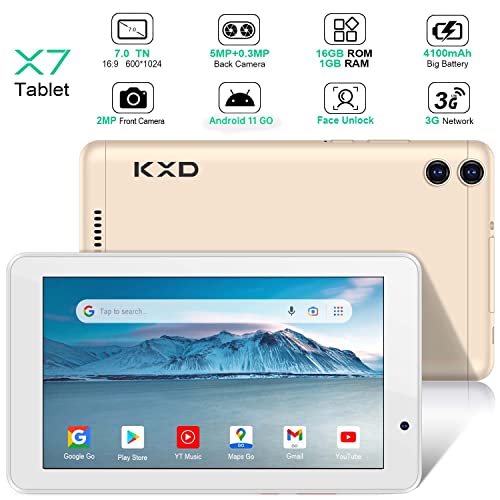 KXD Touch 7 pollici Tablet, Android 11.0 Pie, X7 Tablet PC, Android Tablet portatile, Quad Core Processore 1.4GHz, 1GB RAM 16GB ROM, 5MP + 2MP Doppia fotocamera, 4100mAh batteria grande, wifi
