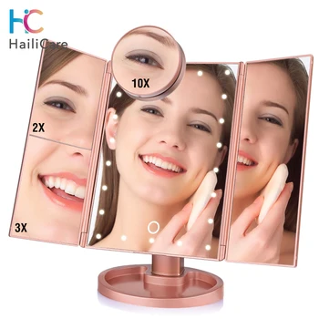 22 LED Touch Screen Makeup Mirror 1X 2X 3X 10X Magnifying Mirrors 4 in 1 Tri-Folded Desktop Mirror Lights Health Beauty Tool